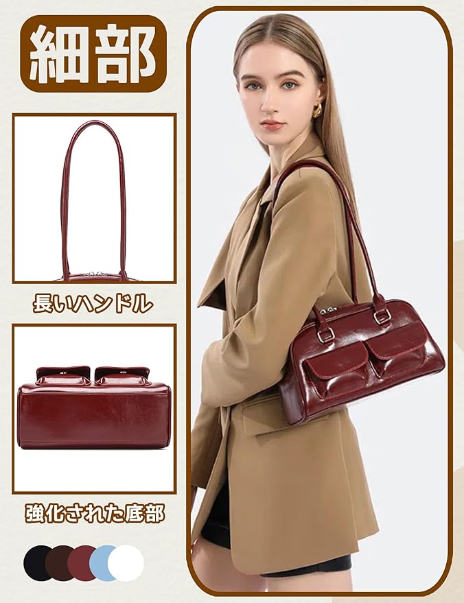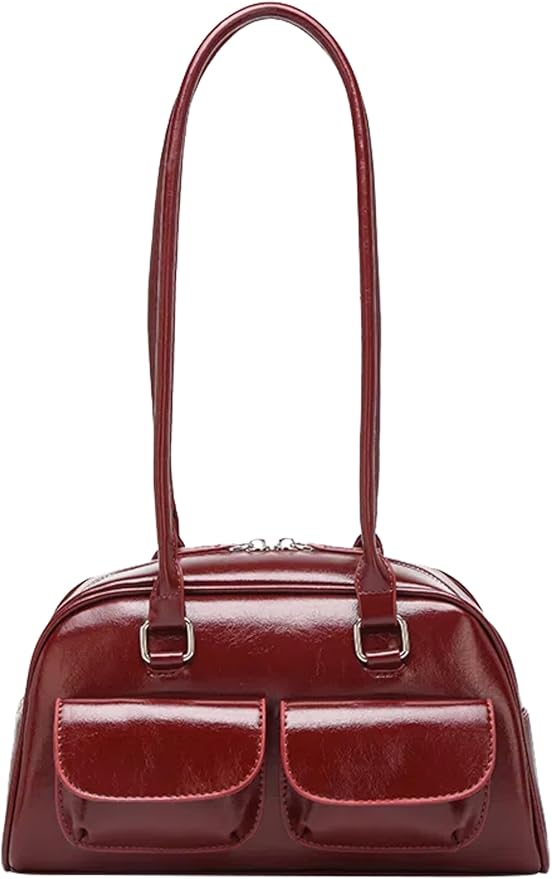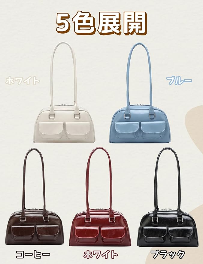 [HIKKER-LINK] ハンドバッグ 横長バッグ y2k レディース: ショルダー 肩掛け 手提げ PU 学院風 シンプル 可愛い 幅広 軽量 ダブルポケット ジップアップ 韓国 通勤 通学 普段使い ショッピング プレゼント JK 女性 彼女 学生 | etshop