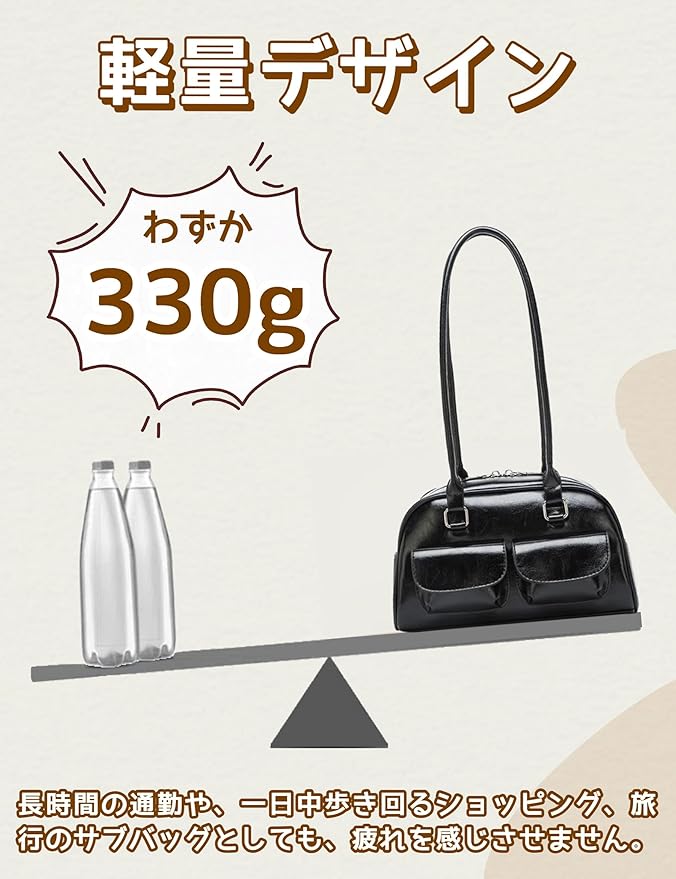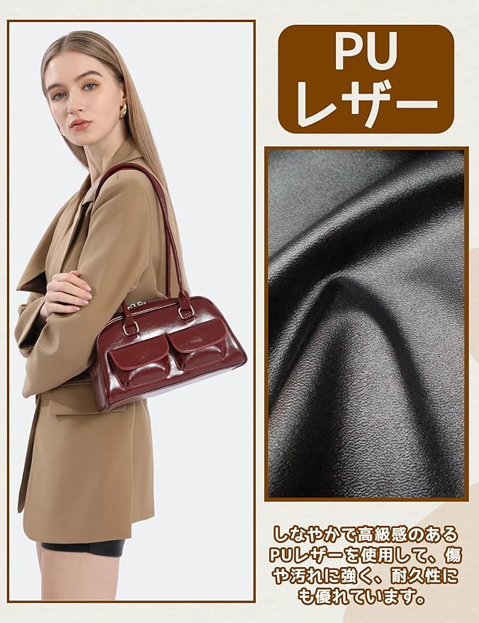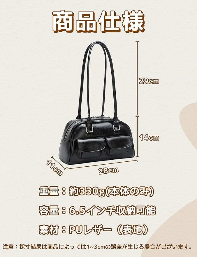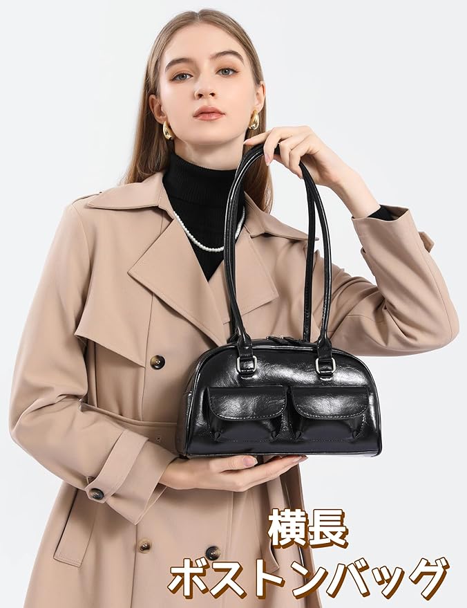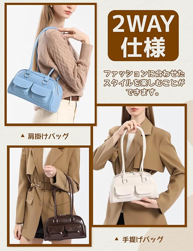 [HIKKER-LINK] ハンドバッグ 横長バッグ y2k レディース: ショルダー 肩掛け 手提げ PU 学院風 シンプル 可愛い 幅広 軽量 ダブルポケット ジップアップ 韓国 通勤 通学 普段使い ショッピング プレゼント JK 女性 彼女 学生