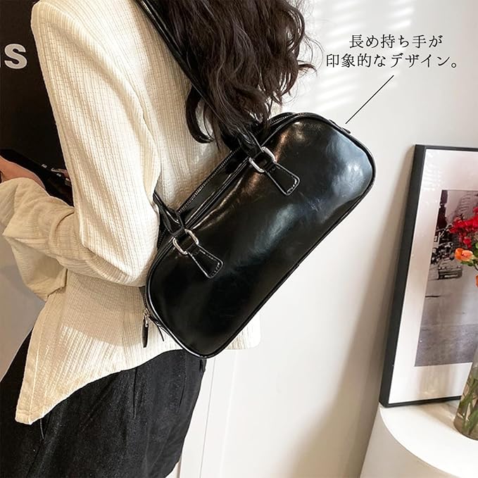 [Lapimou] 横長バッグ ボストンバッグ ボストン ハンドバッグ 肩掛けバッグ ショルダーバッグ バッグ レディース 横長 シルバー a4 大きめ 幅広 大容量 人気 トレンド おしゃれ かわいい (ブラック)