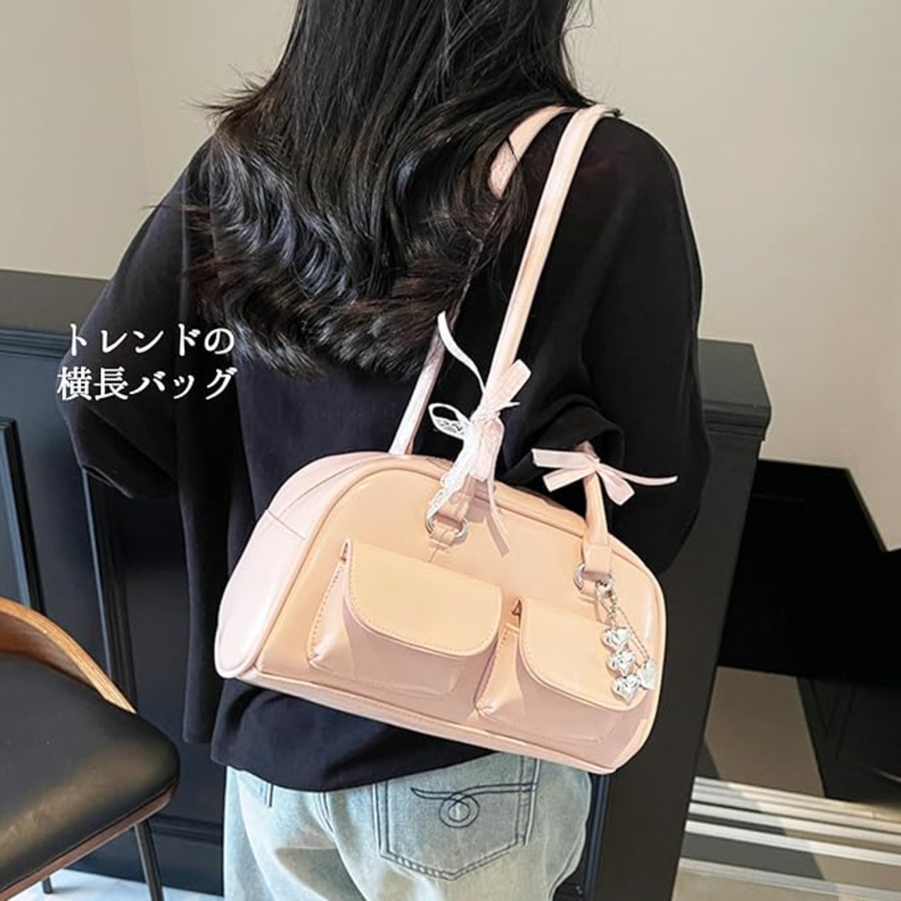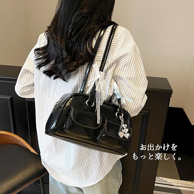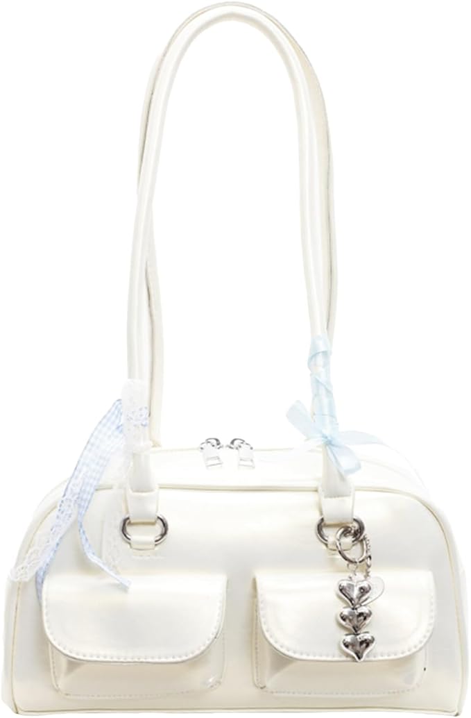 [Lapimou] 横長バッグ ボストンバッグ ボストン ハンドバッグ 肩掛けバッグ ショルダーバッグ バッグ レディース 横長 リボン 蝶結び シルバー a4 大きめ 幅広 大容量 人気 トレンド おしゃれ かわいい (ホワイト) | etshop