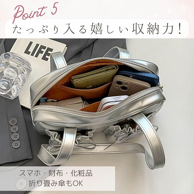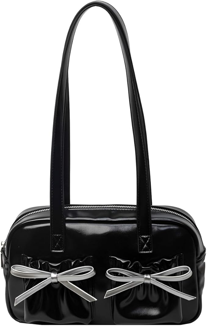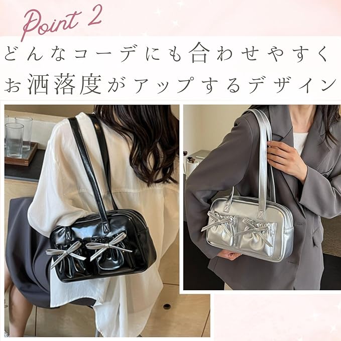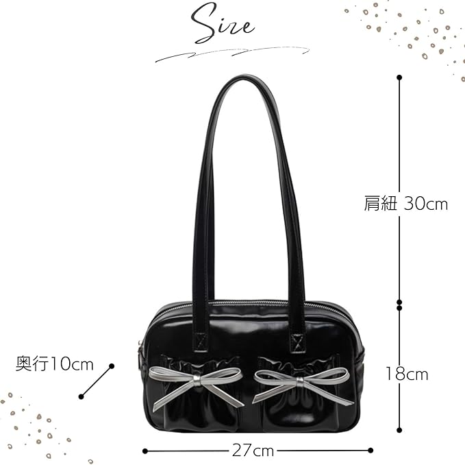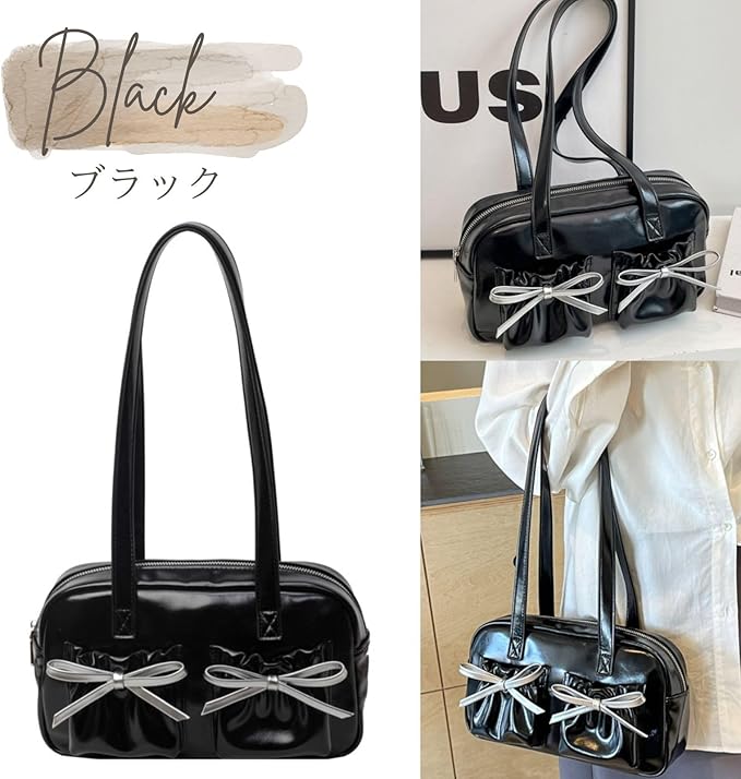 [ハルジオ] ショルダーバッグ 横長 リボン レディース ボストンバッグ ミニボストン 小さめ トートバッグ 横長バッグ 肩掛け リボンバッグ バレエコア トレンド おしゃれ 可愛い シルバー ブラック レッド | etshop