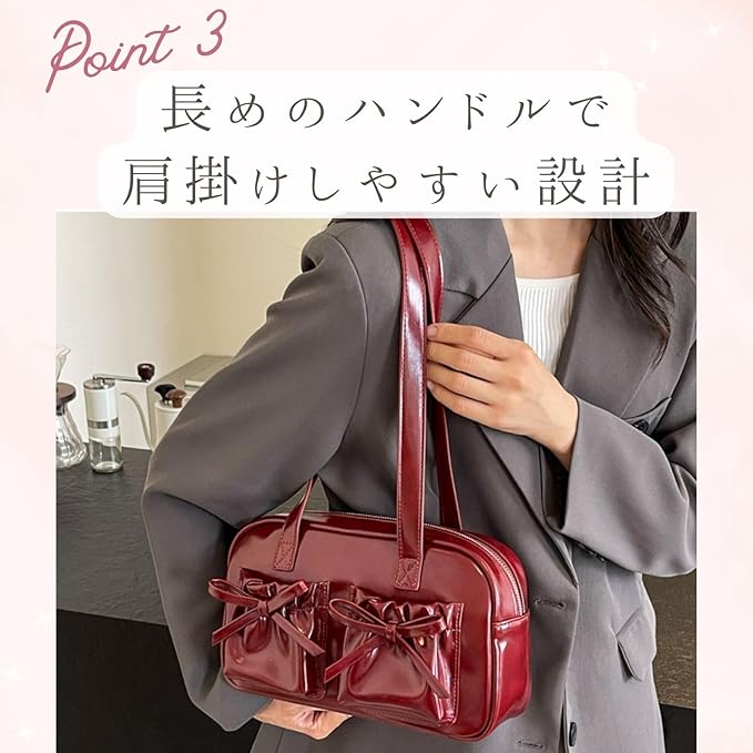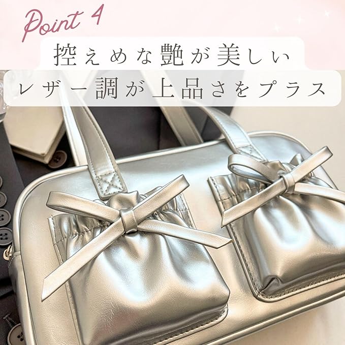 [ハルジオ] ショルダーバッグ 横長 リボン レディース ボストンバッグ ミニボストン 小さめ トートバッグ 横長バッグ 肩掛け リボンバッグ バレエコア トレンド おしゃれ 可愛い シルバー ブラック レッド
