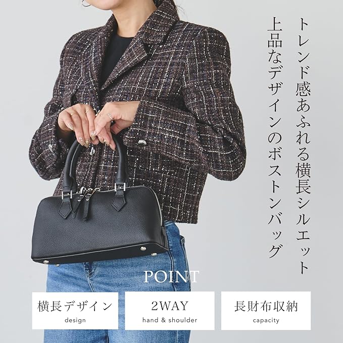 [TOENCOUNTER] 2way ボストンバッグ 横長バッグ レディース ハンドバッグ ショルダーバッグ エレガント 牛床革 レザーバッグ 55185