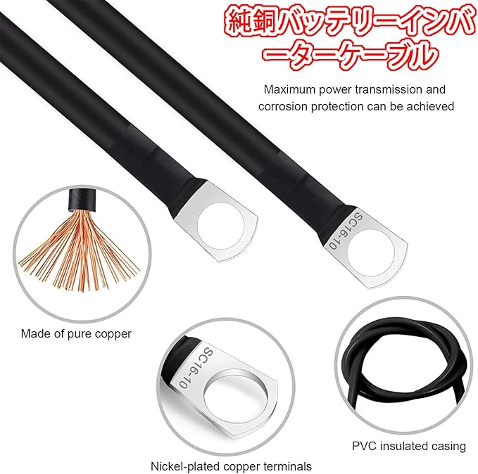 【パッケージに含まれるもの】50cm 16mm バッテリーインバーターケーブルには。
