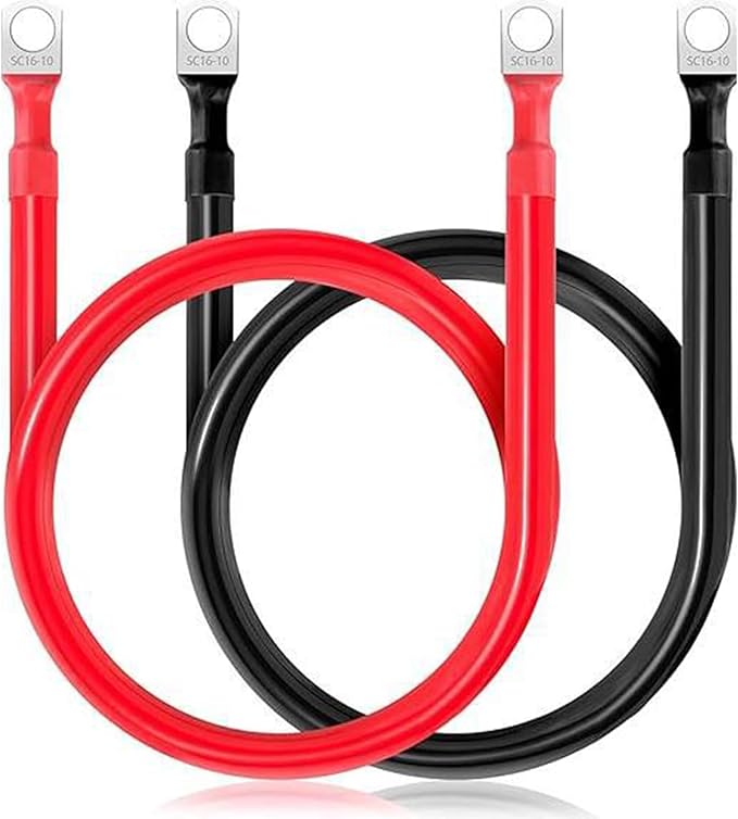 バッテリー増設ケーブルインバーター 船舶用バッテリーケーブル(最大100A) 5AWGゲージ 銅自動車バッテリーケ ーブル 並列 難燃性PVC素材絶縁電線 両側丸型圧着端子 ソーラー、RV、車、ボート、自動車、マリン、オートバイ用の 16mm -10 赤、黒2本セット(50cm)