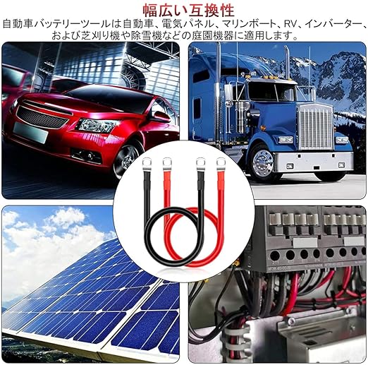 適用範囲:インバーターケーブルは、自動車、トラック、マリンボート、ソーラー、RV、トレーラー、ゴルフカー、オートバイ、芝刈り機などの電力用途によく使用されます。