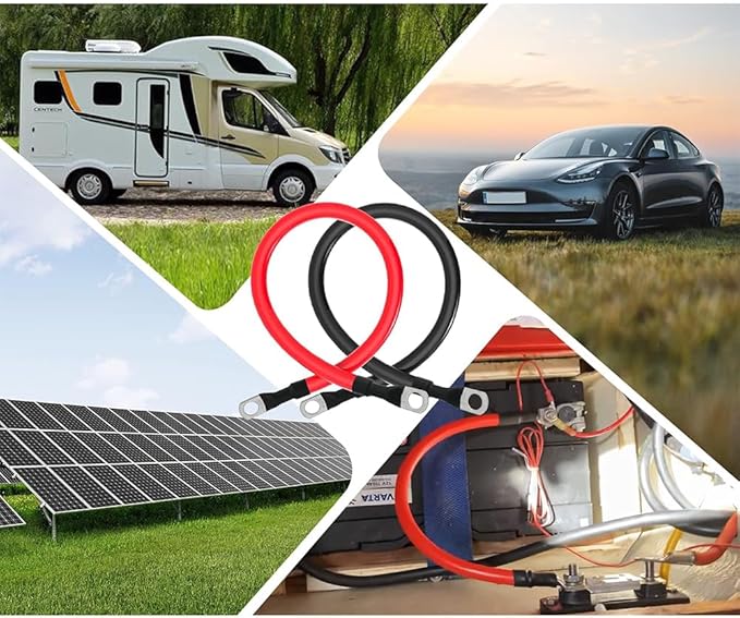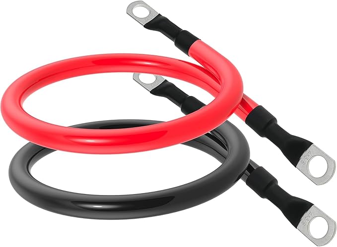 LIKENNY バッテリー増設ケーブルインバーター(最大60A)並列 バッテリーケーブル 電気機器用ビニル絶縁電線 KIV線ケーブル 両側丸型圧着端子 赤 黒2本セット (30cm 20mm )