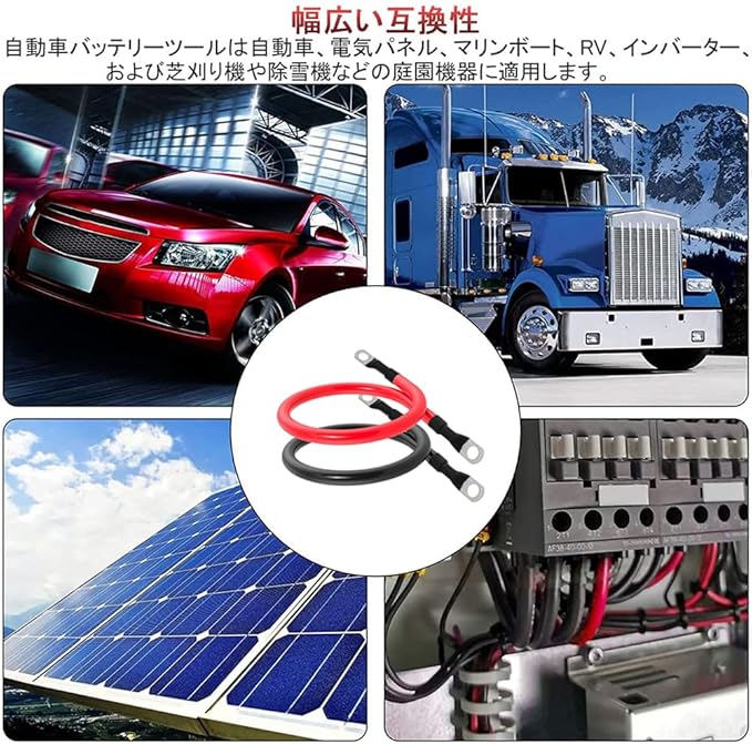 【用途】バッテリーバンク配線、インバーターケーブル、アースケーブル、船舶、二輪車、自動車、ソーラーなどに幅広く使用されています。 自動配線アプリケーションおよびその他のアプリケーション。
