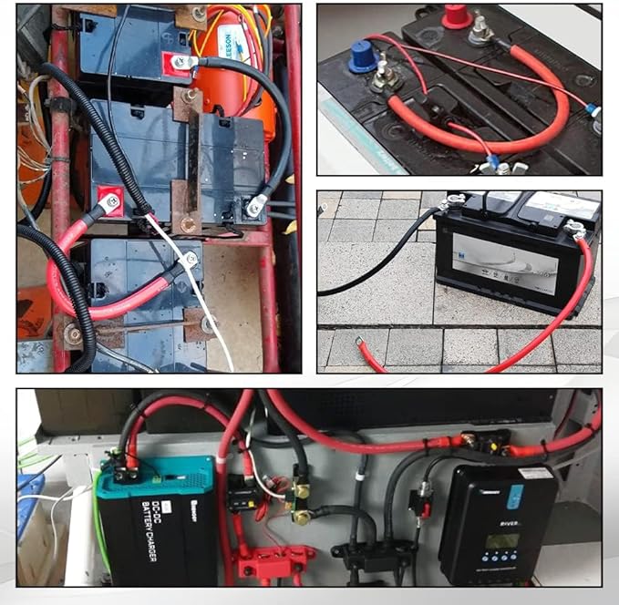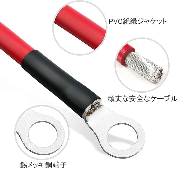 【リング端子付き】両端には金属リング状端子が付いており、バッテリー端子に簡単に接続することができます。両端に10mmの金属リング端子が付いた自動バッテリーケーブル銅。