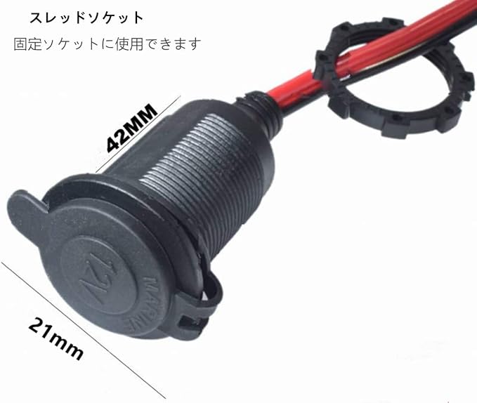 シガレットライターソケットはネジ切りされており、目的の位置に固定できます。 防塵および防水帽子付き