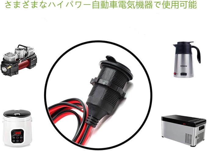 12V/24V シガレットライターソケットまたは改造ソケットの取り付けに適しています。 エアポンプで使用できます。 カー冷蔵庫。 やかん。 ハイパワー機器