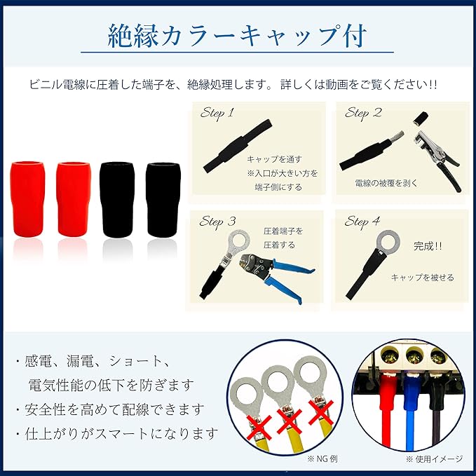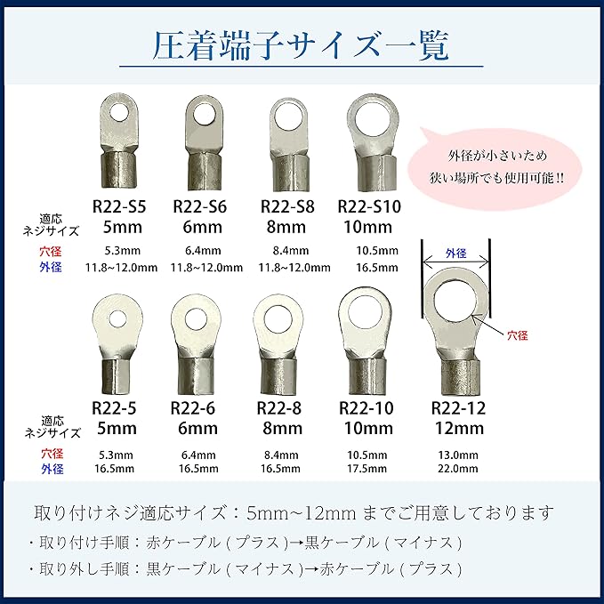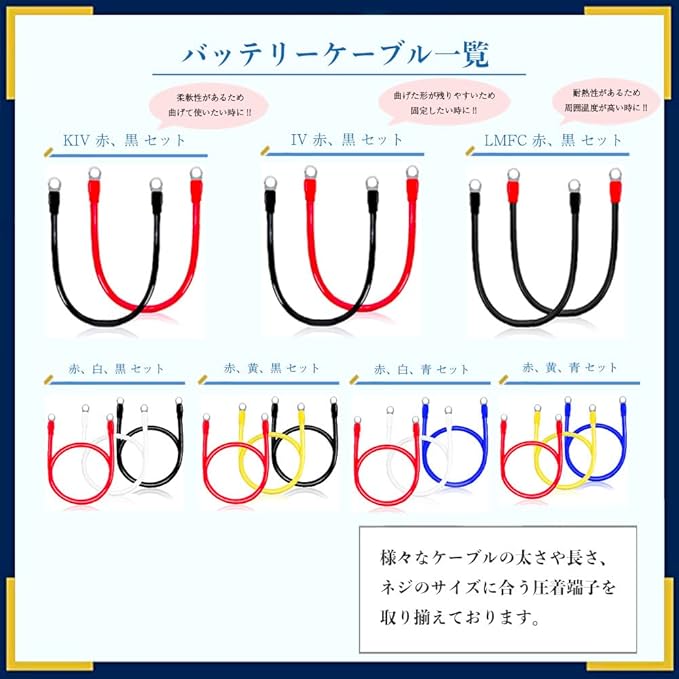 FKK バッテリー増設用並列ケーブル LMFC線 22SQ 赤黒セット各0.3m R22-6 600Vケーブル 両端丸形圧着端子 5mm 6mm 8mm 10mm 12mm 難燃性架橋ポリエチレン絶縁電線 バッテリー常時電源 22㎟ LMFC MLFC 赤 黒 電線 ケーブル 6mm