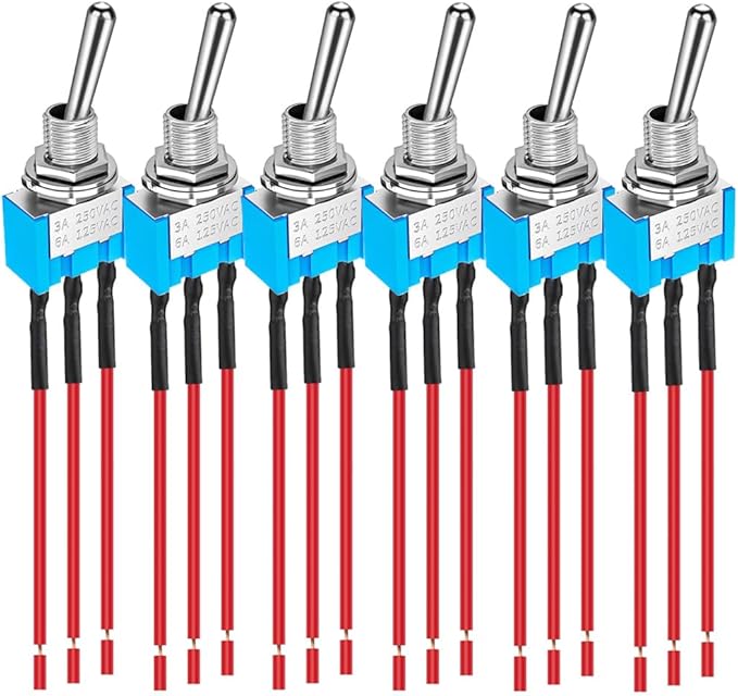6 個パック 配線済み MTS-103 ブルー ミニ トグル スイッチ 125VAC 6A、3 ピン 3 ポジション ON/OFF/ON オン/オフ/オン スイッチ 自動車用 船舶用 トグルスイッチ