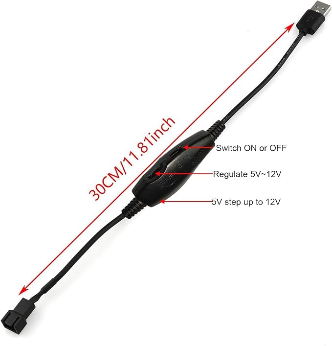 12V 電圧ステップアップ USB から 3 ピンおよび 4 ピン PC ファン スリーブ電源アダプタ ケーブル、スイッチおよび速度レギュレータ付き