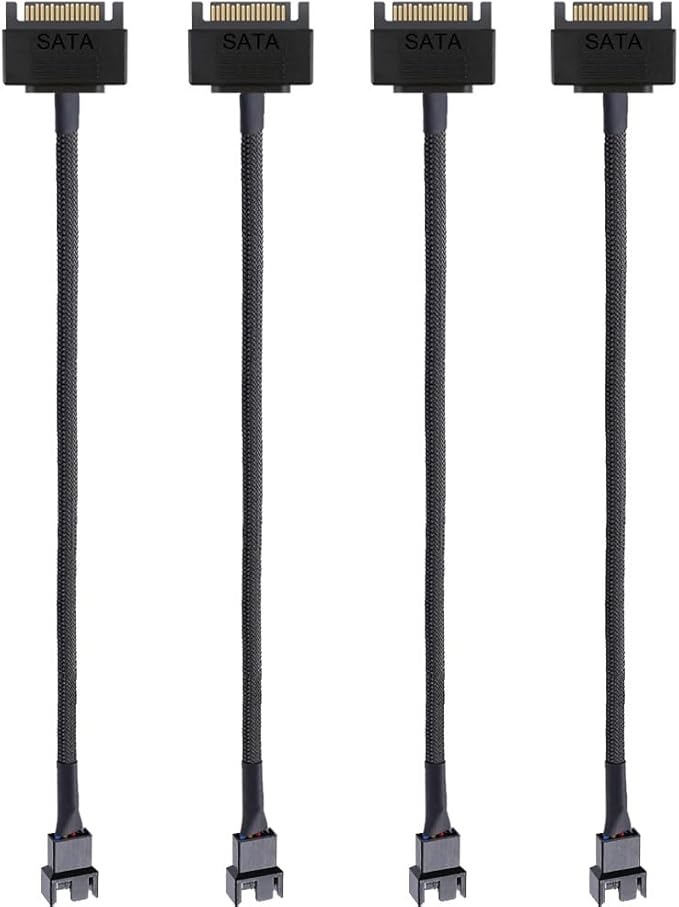 4 本の SATA から 3 ピン / 4 ピン PMW 12V PC ケース ファン電源アダプタ ケーブル、3 ピンまたは 4 ピン (PWM コネクタ) から 15 ピン SATA コンピュータ クーラー冷却ファン電源ケーブル