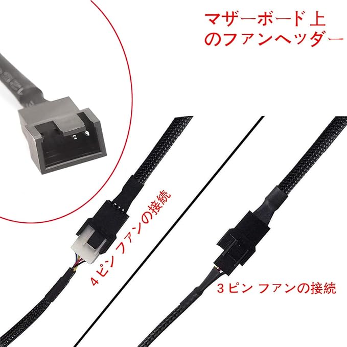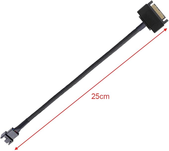 高密度黒スリーブ ケーブル、長さ 25 cm、ケーブルは標準 3 ピン ファンと下位互換性があります