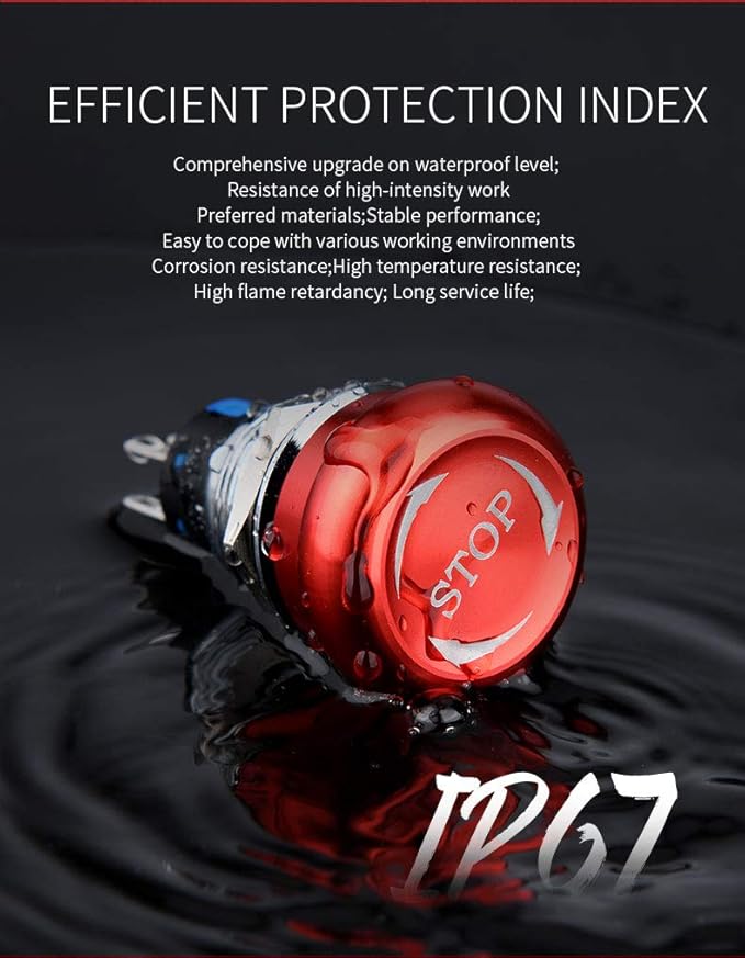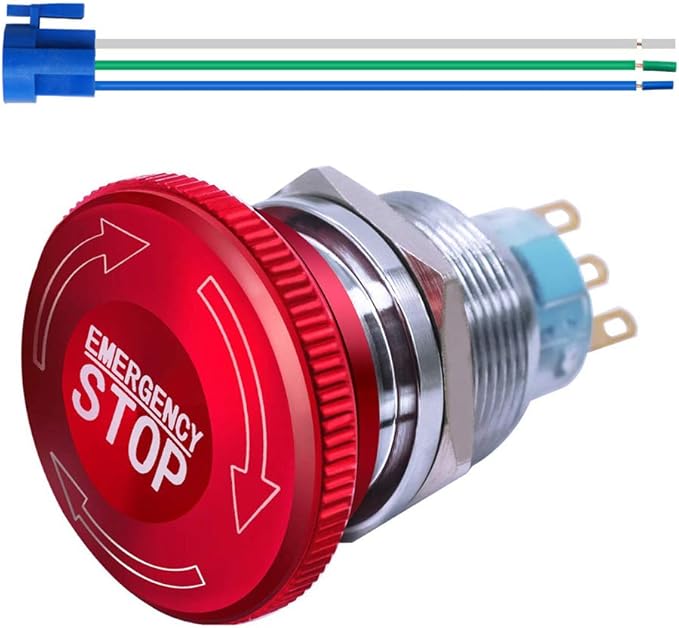 22mm 12-220V 3Aラッチング非常停止押しボタンスイッチステンレス鋼メタル1NO 1NC追加接続プラグ