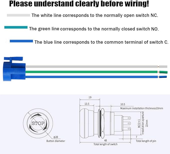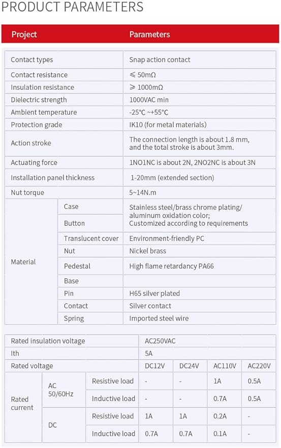 ボタンの直径:31mm / 1.2 ";取り付け穴の直径:22mm / 7/8"; フィットパネルの厚さ(調整可能):6mm / 15/64 "(最大)。