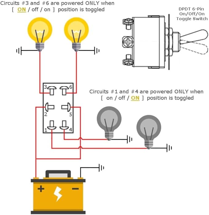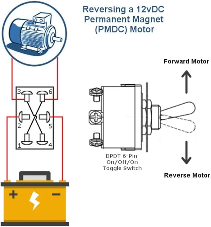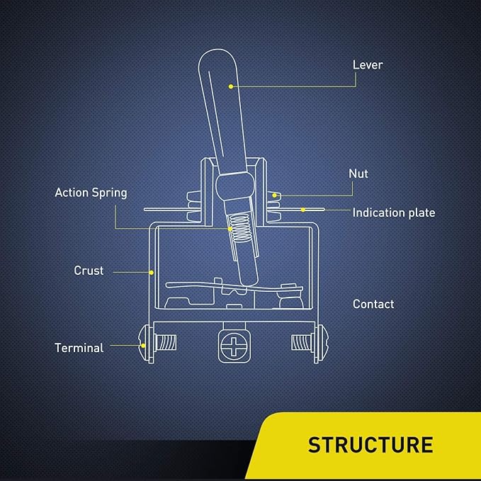 コネクタタイプ:DPDT、6端子ピンオン/オフ/オン。 電源: 15A 250VAC/20A 125VAC、12mm 取り付け穴。