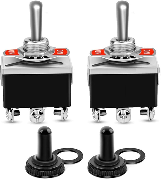2個 6ピン/3ポジション ON/OFF/ON 高耐久ロッカートグルスイッチ 0~110V/15A DPDTラッチオン/オフ/オンスイッチ 防水キャップ付き(ラッチ)