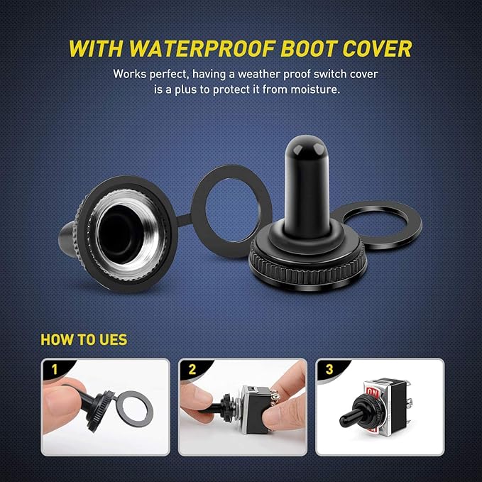 パッケージ内容: トグルスイッチ2個 + 防水キャップ2個。