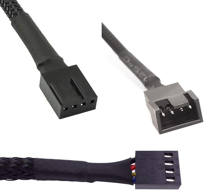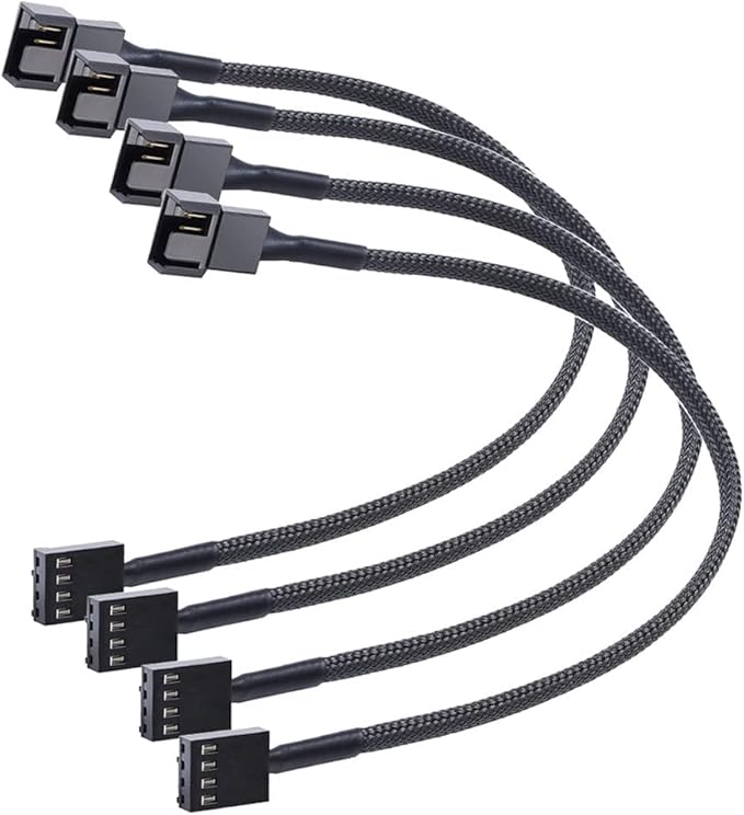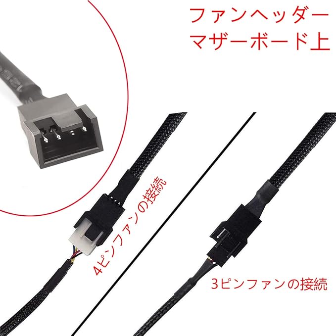 4 ピン オス - メス ファン延長ケーブル。4 ピン PMW ファン コネクタおよび 3 ピン ファン コネクタと互換性があります。