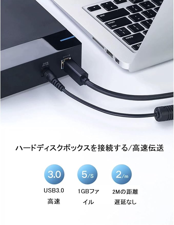 【データ転送】USB 3.0 ケーブルは最大転送速度 5Gbps に対応し、USB 2.0 より最大 10 倍速いデータ転送を実現します。