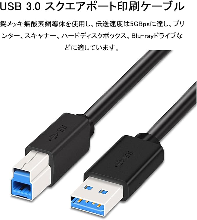 USB 3.0 ケーブル プリンターケーブル 1.8m タイプAオス タイプBオス 5Gbps 高速転送 動作安定 スキャナー/サーバー/外付けHDD/外付けSDD/プリンターなど対応 ブラック