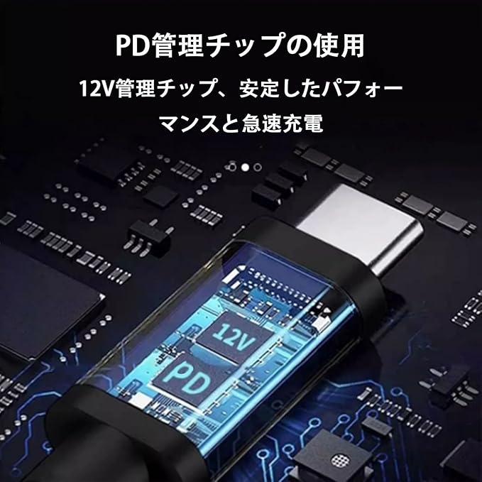 【注意事項】12V充電ケーブル出力に適したPD電源(注意:PD充電を行うにはPDプロトコルをサポートする電源装置を使用する必要があります)を使用して、最大PD 36 Wの急速充電速度を出力してください。(出力はPD電源の能力に依存する)