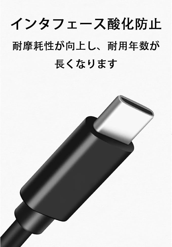 【高耐久デザイン】柔らかいPVC材質を選び、折り曲げに強く、錆びず、縺れにくいです。また、コネクタにニッケルメッキ加工が行われ、酸化しにくく耐久性に優れています。