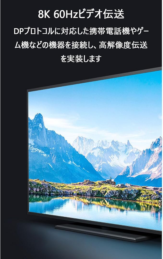 【8K@60Hz 出力】40Gbpsのデータ通信と8Kの高解像度出力に対応しています。対応デバイス同士なら、大容量ファイルの送受信も短時間で行えます。で映像信号・音声信号を取り扱えます。コネクタ部分の強化により、断線の心配が少なくなっています。