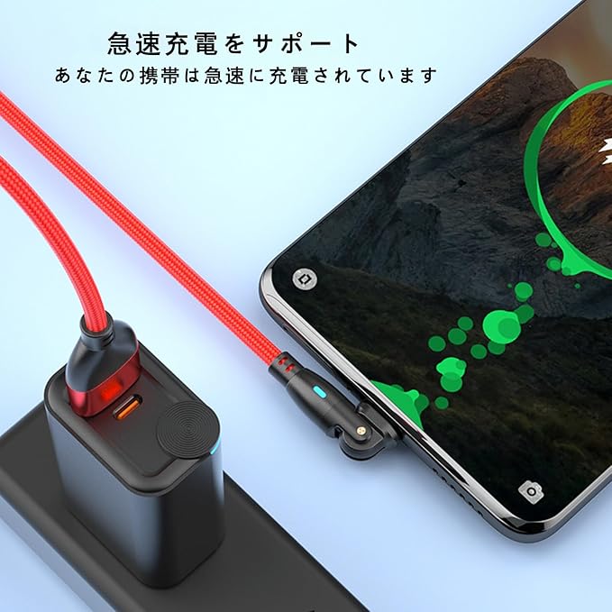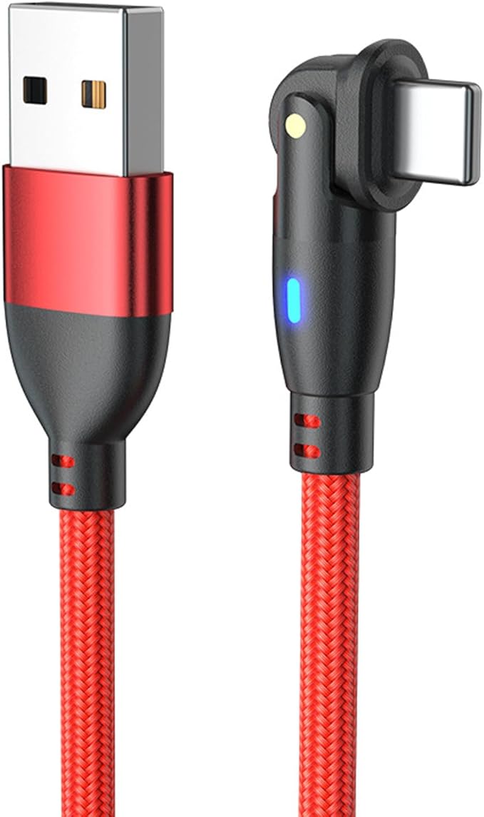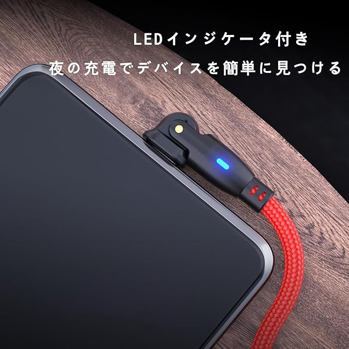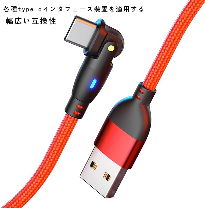 USB Type Cケーブル180度回転L字型急速充電高速データ伝送帯LEDランプ耐久ナイロンUSB Cケーブル G-alaxy その他 Android 各種などUSB-C機器対応1 m(赤)