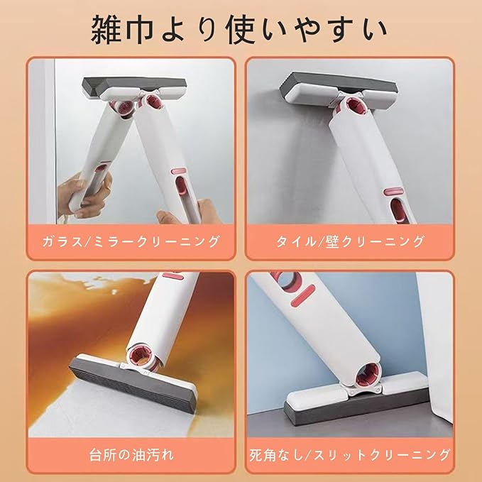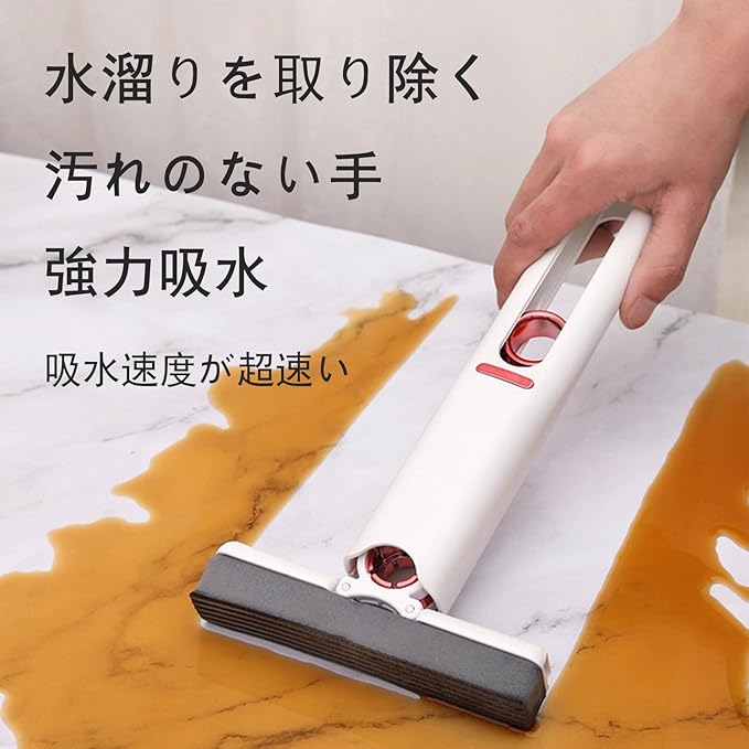 【推拉式デザイン】推拉式デザイン、軽くて使いやすく、操作が簡単。注意:スポンジヘッドが乾燥して硬くなったら、綿ヘッドを水に浸して、水分を十分に吸収して、使用することができます。