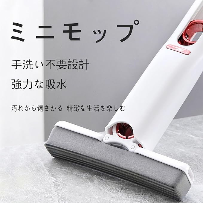 【ポータブルミニモップ】軽量でコンパクト、収納が簡単、フック付きデザインで、キャビネットにぶら下げることができ、収納しやすく、スペースを取らない。