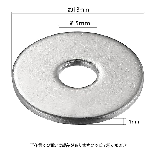 ステンレス 大ワッシャー M5用 【外径18mm, 厚み 1mm】