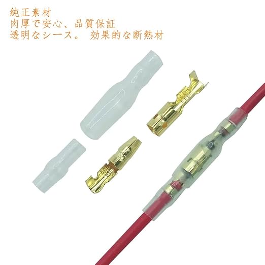 ショート防止など非常安で山母端への雄&メスはそれぞれ保護カバーが付いているため、安全に使用、スピーカー、汎用リレー、オーディオケーブル束などの端末などの絶縁に最適な端末セットです。 ギボシ端子 配線、スピーカー、汎用リレーターとライトの接続部分に使用可能