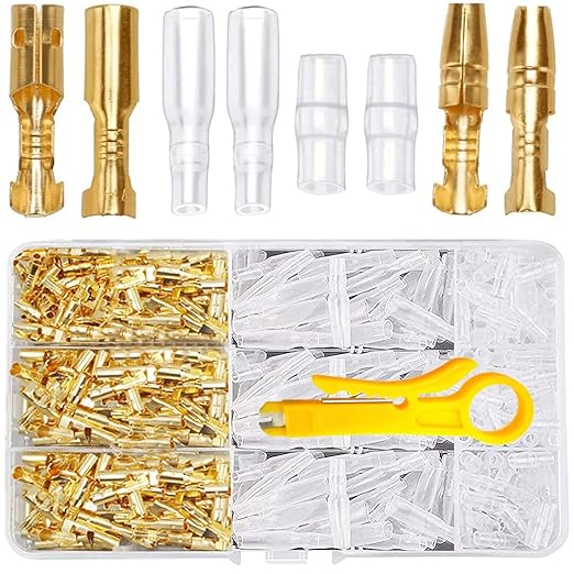 ギボシ端子セット 高品質の真鍮製、防錆加工、優れた導電性と耐久性を備えています。 本接続端子セットは十分な数を持つオスメス端子と絶縁オスメススリーブが付属しますので、ご安心ください。