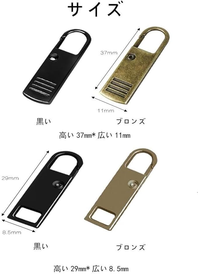 ファスナー 引き手 4個入り ファスナーチャーム 修理 金属製 交換用 カバン/財布/衣類/靴 DIY 手芸 手作り 裁縫 簡単に取り付
