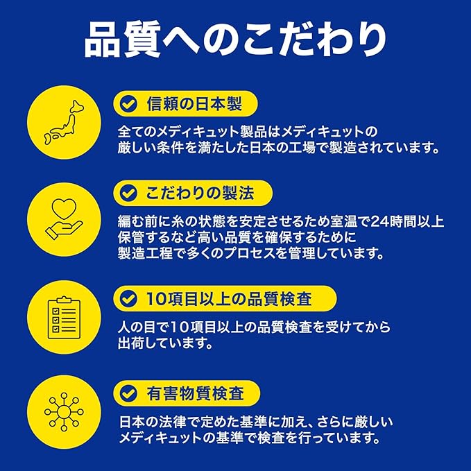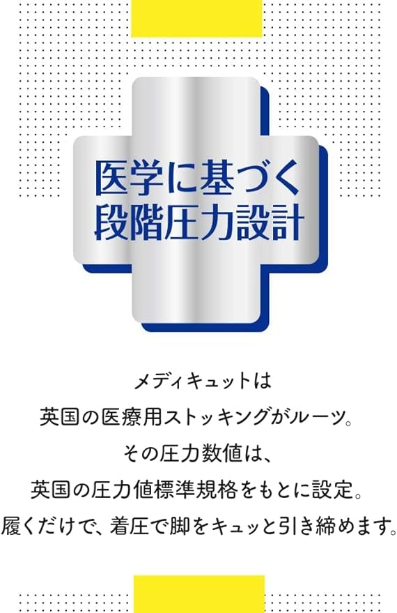 【着圧ソックス メディキュット】:ポリエステル、ナイロン、ポリウレタン、綿