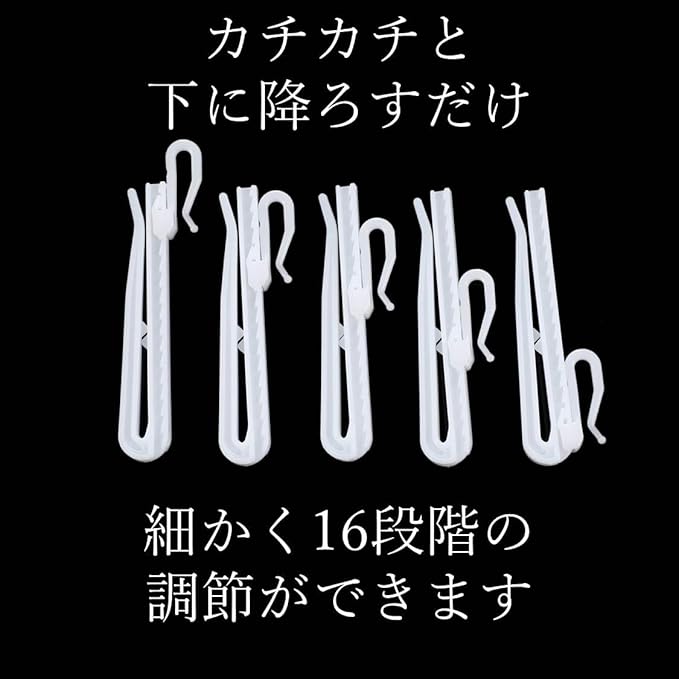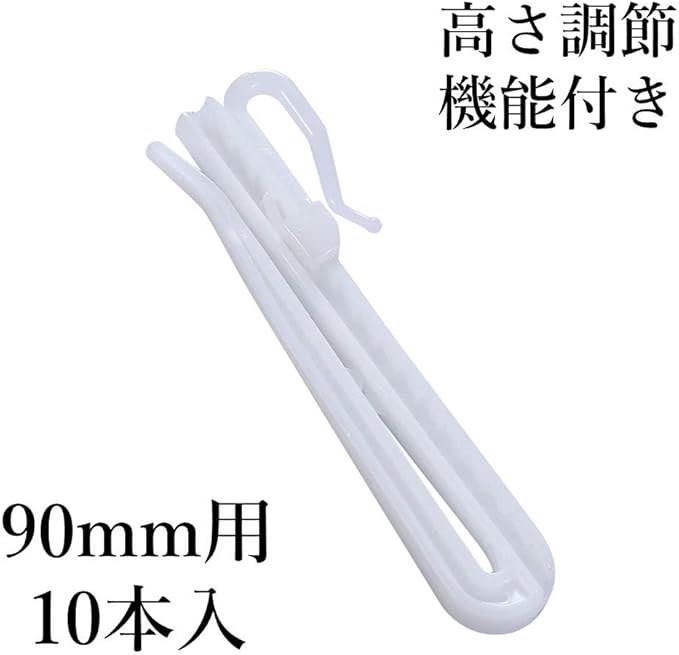 高さ調節可能なカーテンフック10本入りです。