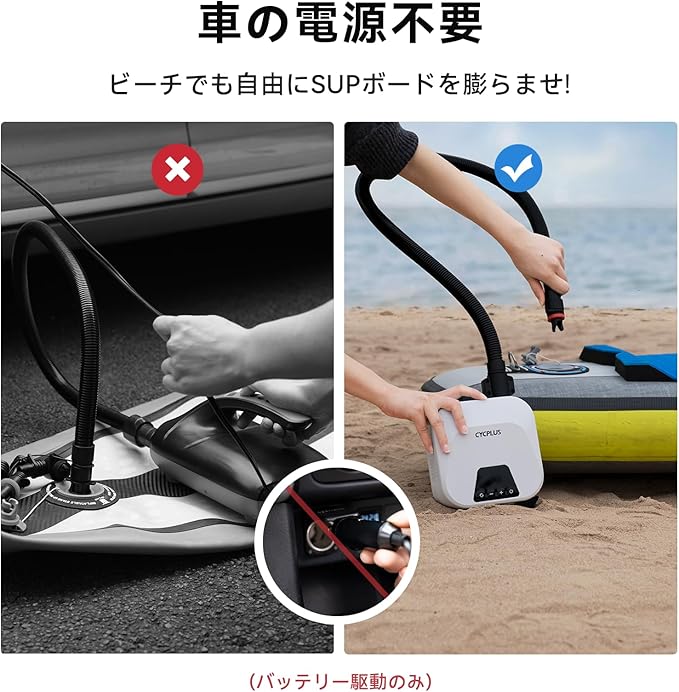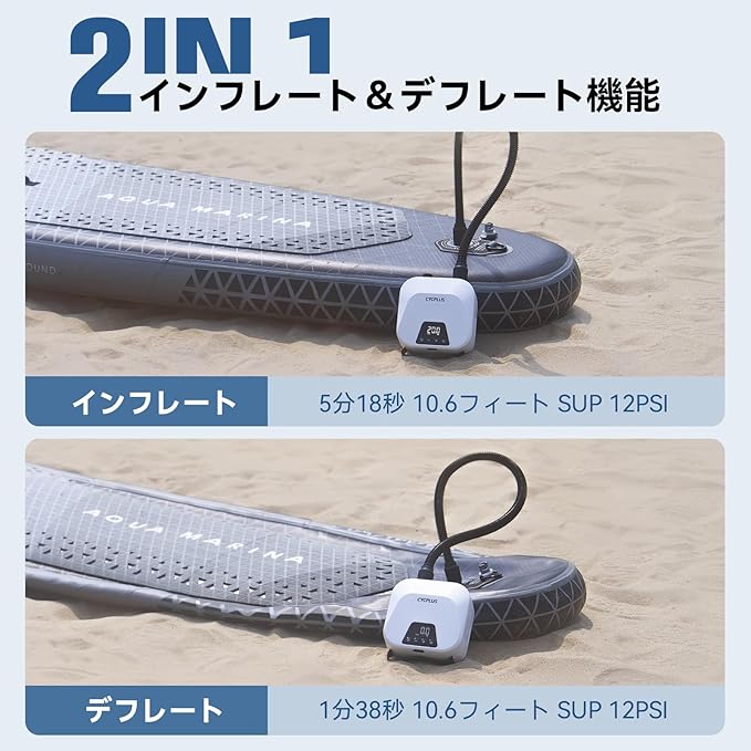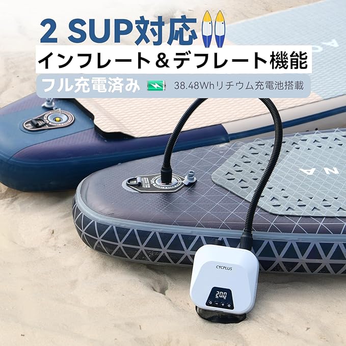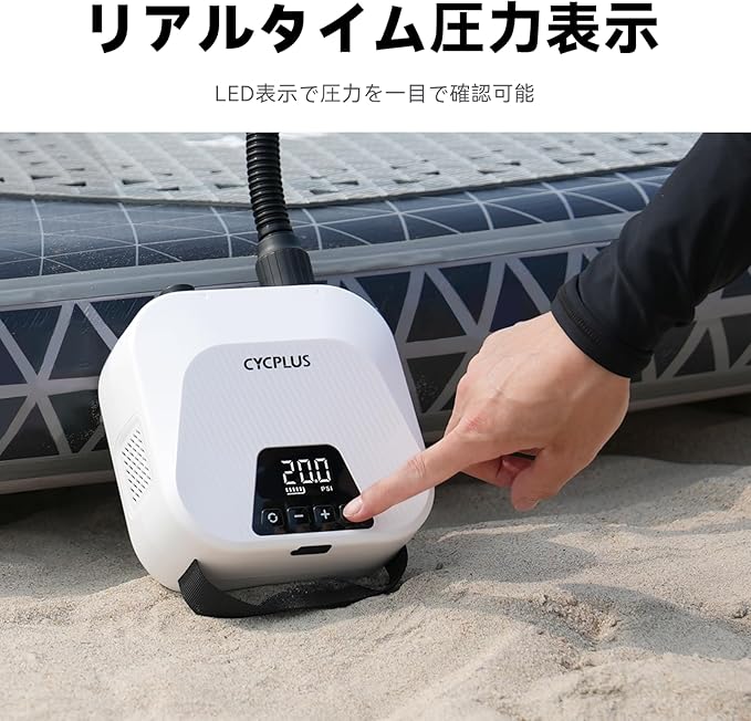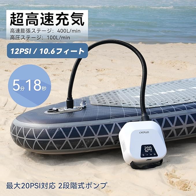 CYCPLUS 20PSI充電式SUPエアポンプ オートオフ機能付き電動ポンプ,デュアルステージインフレーション&デフレーション,SUP、インフレータブルテント、ボート、カヤック対応