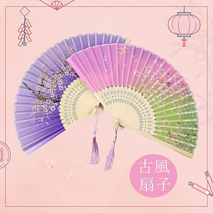 [Jinchuan] 扇子 レーディス 扇子袋&ギフト箱付き 和風 シルク扇子 和柄 桜 花 蝶 折りたたみ式 和装小物 絹 女性用 男性 婦人 メンズ 和風扇子 ダンス おみやげ プレゼント