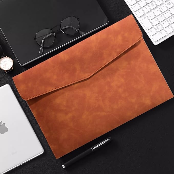 【優れた防水PUレザー素材】高級感あるPUレザーを使用し、表面に耐水コーティングを施しています。急な水しぶきや濡れた床面でも、書類をしっかりガードします。
