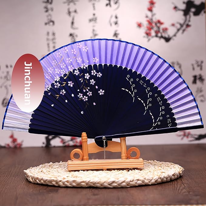 [Jinchuan] 扇子 レディース 女性用 高級 ビジネス 扇子入れ ハンカチ付 セット 桜 兎 和風 オリジナルデザイン