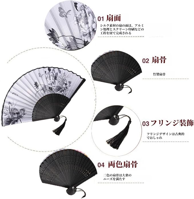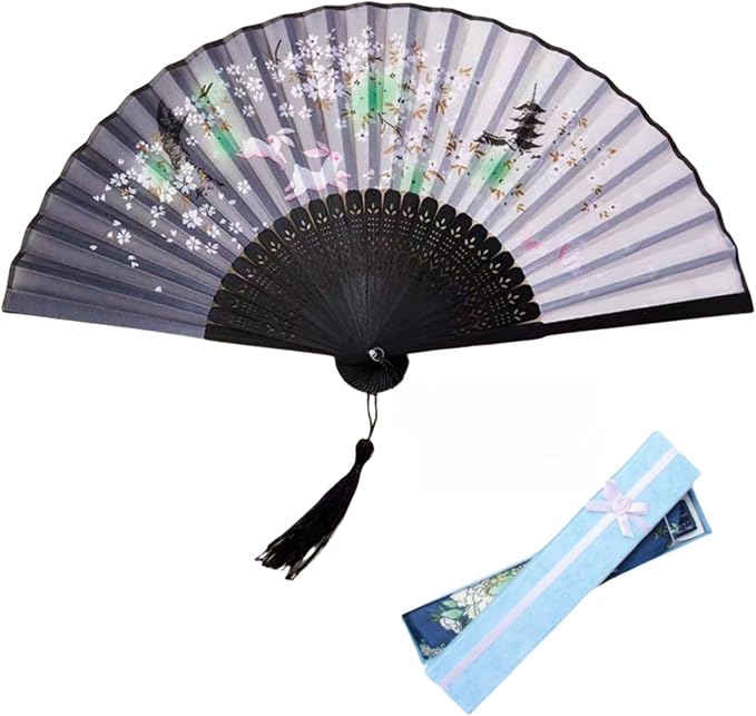 [Jinchuan] 扇子 レーディス 扇子袋&ギフト箱付き 和風 シルク扇子 和柄 桜 花 蝶 折りたたみ式 和装小物 絹 女性用 男性 婦人 メンズ 和風扇子 ダンス おみやげ プレゼント