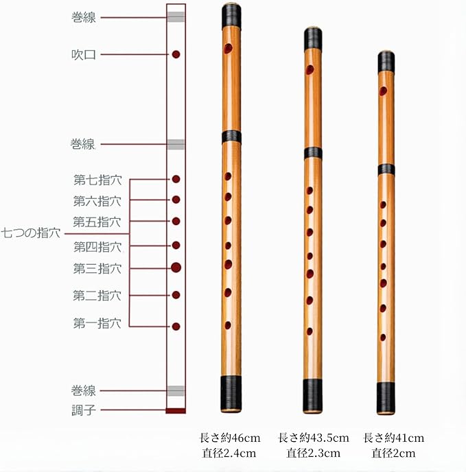 【素材】:五年以上の高品質の竹を採用し、発音が正しく、標準の長さです。厚さは適合で、密度は良いです。頑丈で、落ちても大丈夫です。初心者におすすめの篠笛です。