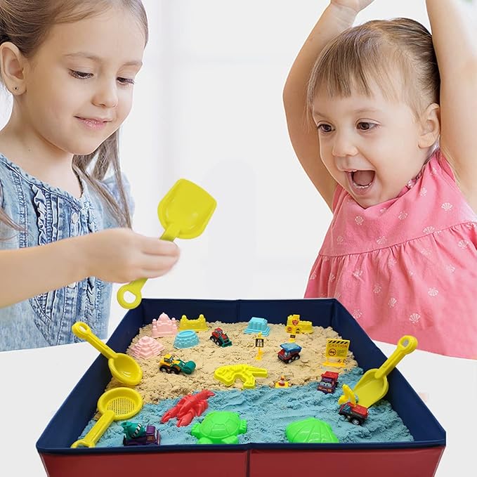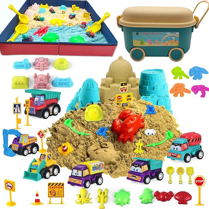 【収納が簡単】本製品は可愛な収納ボックスも付いて、毎回ご使用の後砂を収納ボックスに保管してください,干しっ放しで置くにはいけません。持ち運びは超便利です。ツールの紛失を気にせず、長期間ご使用いただけます。ボックスには4つの車輪があるので、子供たちはドラッグして遊ぶことができます。