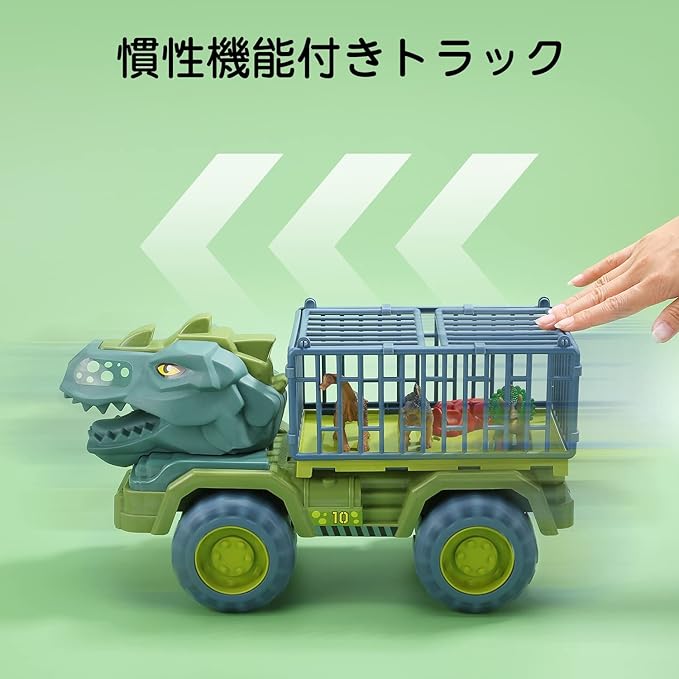 【恐竜慣性カー2台付属】ティラノサウルスとアンキロサウルスの外観を持つ2台の摩擦動力車がセットします。バッテリーは不要で、ワンプッシュで長距離スライドします。子供が簡単に操作できるように特別に設計されています。