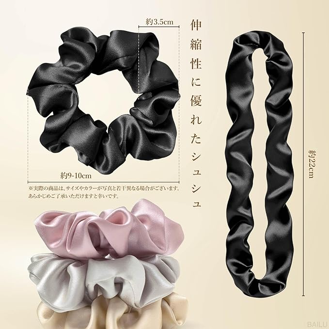 ✿【シュシュ シルク 大きめサイズ対応】 髪量が多い方やアクセント使いに適したシュシュ シルク 大きめサイズもラインナップ。ロングヘアからミディアムヘアまで幅広く対応します。