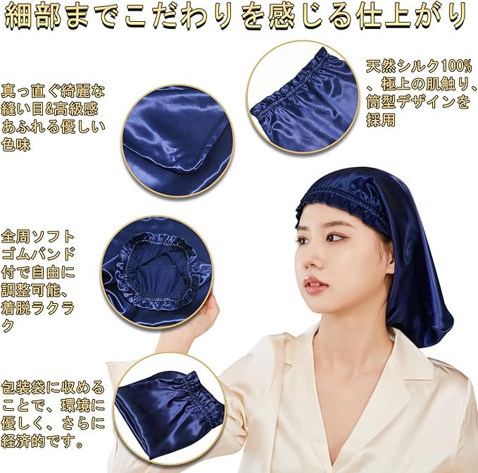 [Utukky] シルクナイトキャップ シルクキャップ 筒型デザイン 朝まで脱落なし シルク100% シルクナイトキャップ ロングヘア用 ヘアキャップ 枝毛・寝癖防止 就寝用 誕生日 プレゼント